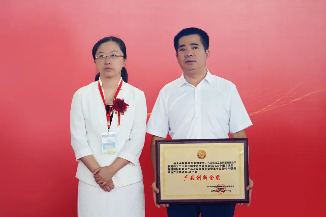 经过业内权威专家评选,备受瞩目的第十三届IEOE中国国际食用油产业博览会颁奖环节隆重揭晓。九三金纯系列凭借产品质量优势斩获“优质健康粮油产品金奖”,九三SHOWLIFE大豆(5088, -37.00, -0.72%)二酯食用烹调油以技术创新领域的卓越成果荣获“产品创新金奖”。九三食品公司代理总经理王立庆代表九三领取殊荣。