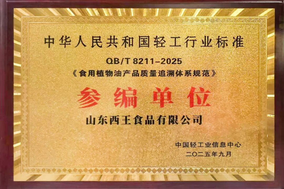 近日,由中国轻工业信息中心牵头制定的《食用植物油产品质量追溯体系规范》(QB/T8211-2025)正式落地,这是我国食用植物油行业首个聚焦产品质量追溯的行业标准,填补了行业追溯标准空白。作为粮油行业领军企业,西王食品(000639)深度参与标准编制,以实践经验为行业规范化 点击详情>>